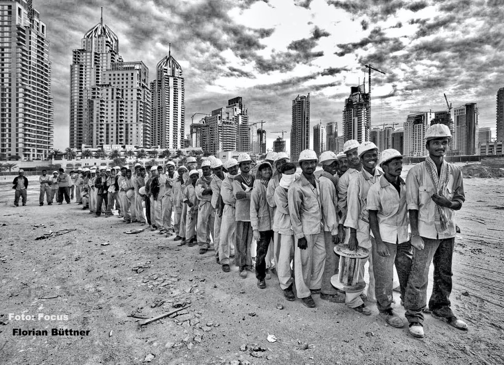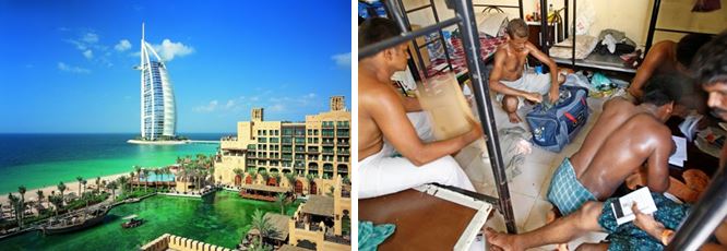 ساهينال زمين خانواده را فروخت و از وام دهندگان محلی قرضی دست و پا کرد تا خودش را به اين بهشت برساند. همينکه به فرودگاه دوبی رسيد، شرکت ساختمانی مربوطه پاسپورت او را گرفت. او هنوز که هنوز است پاسپورتش را نديده است. به او گفتند از همان لحظه بايد روزانه 14 ساعت در گرمای کوير کارکند – در جايی که به توريست ها ی غربی مي گويند نبايد در تابستان حتی 5 دقيقه هم بيرون بمانند و دمای هوای آن به 55 درجه ميرسد. دستمزد برابر بود با 500 درهم برابر با 90 دلار در ماه. اين يک چهارم مزدی بود که وعده داده شده بود. کمپانی به او گفت اگر نمي خواهد، مي تواند برگردد. «ولی چطور ميتوانم به کشورم برگردم. شما پاسپورت مرا گرفته ايد. من پولی برای خريد بليط ندارم.» آنها جواب دادند: «پس بمان و کارکن».