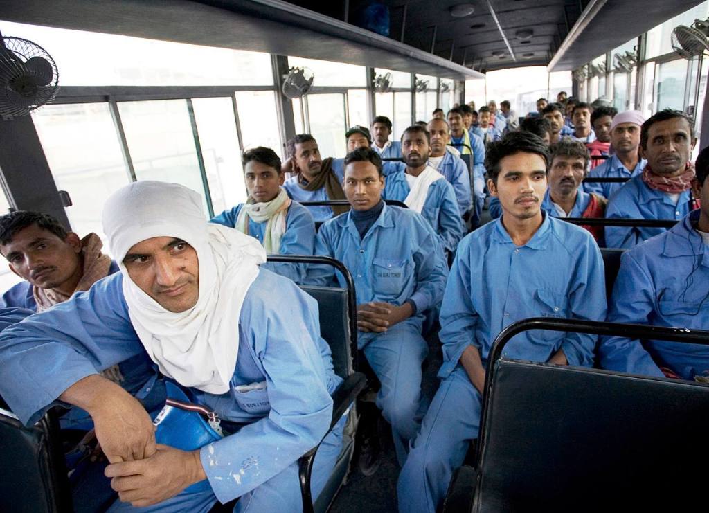 هر بعد از ظهر صدها هزار جوانی که دوبی را ساخته اند با اتوبوس از محل کارشان به منطقه ای بايردر چندکيلومتری شهر انتقال داده شده و در درون ديوارهای سيمانی آن از جهان جدا مي شوند. تا چند سال قبل آنها را روی وسايل نقليه مخصوص حيوانات بار کرده و بين محل اقامت و کار نقل و انتقال مي دادند. ولی بعد از گلايه ی «خارجی ها» از اين منظره نامطبوع، نقل و انتقال آنها با اتوبوس های کوچک آهنی صورت مي گيرد که در منطقه کويری مثل يک گرمخانه عمل می کند. مثل اسفنج فشرده عرق از سر و روی آن ها می ريزد.