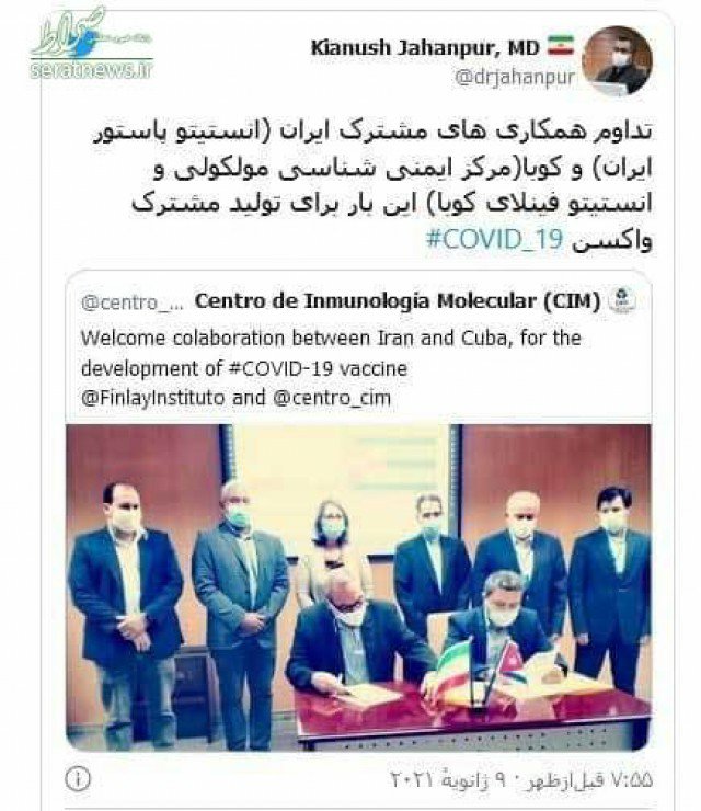 در همین حال ، موسسه واکسن فینلای کوبا و پاستور ایران توافق نامه همکاری با هدف تکمیل آزمایشات واکسن ضد کووید ۱۹ ساخت کوبا ، به نام سوبرانا ۲ را امضا کردند.