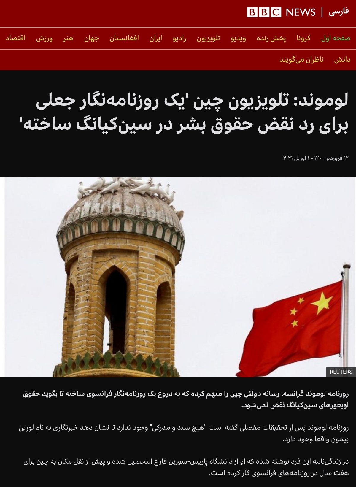 روزنامه معروف فرانسوی «لوموند» اخیرا شبکه «سی جی تی ان» چین را به استفاده از یک خبرنگار جعلی فرانسوی به نام «لائورنه بیوموند» (Laurène Beaumond) در پوشش دهی گزارش های مربوط به اویغورها متهم کرد.