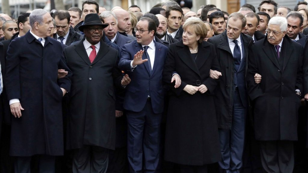 در این میانه نقش کشورهای لیبرال دمکرات غربی در بزرگداشت «آزادیهای بیان، قلم و رسانهها» بسیار برجسته شد، و حتی دولت هائی که خود ید طولائی در خاموش کردن صدای مخالفان و شکستن قلم ها دارند میدان دار معرکه شدند از جمله اسرائیل و بنیامین نتانیاهو نخست وزیر این کشور که با سفر به فرانسه در صف اول تظاهرات در کنار دیگر سیاستمداران جهان زنجیر بسته بود، با وجود این بسیاری از چپها به رسم یادگار در این اعتراضات شرکت کردند و از خود در شبکه های اجتماعی تصاویر مشت گره کرده با قلم در دست منتشر کردند و مقالات در دفاع از آزادی بیان و رسانه ها نگاشتند.