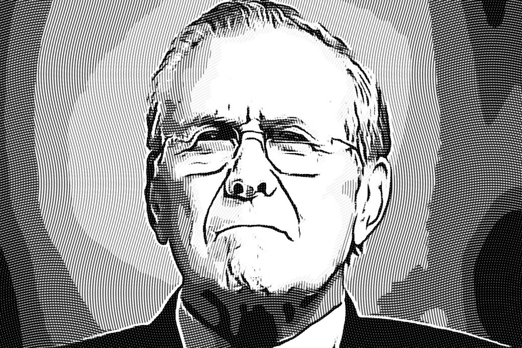 آغاز جنگ افغانستان ،حمله به ساختمان پنتاگون در روز حملات 11 سپتامبر، حمله آمریکا به عراق و انجام اقدامات فجیع در این کشور و سپس انتشار عکس هایی از شکنجه زندانیان در زندان ابوغریب از جمله حوادث مهم در دوره وزیر دفاع اسبق آمریکا بود که از وی در کنار شماری دیگر از چهرههای دولت جورج بوش پسر مانند پل ولفوویتز، پل برمر و جان بولتون به عنوان یکی از سرشناسترین چهرههای نومحافظه کاران یاد میشد.