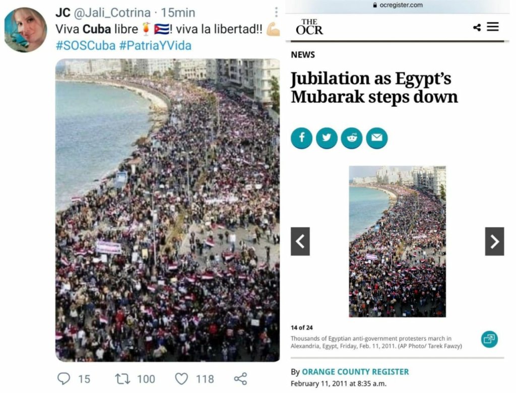پس از پخش خبر اعتراض بخشی از ساکنین هاوانا به وضعیت اقتصادی و فشار معیشتی که به خاطر محاصره اقتصادی آمریکا و وضعیت اظطراری کرونا در این کشور به وجود آمده، بخش وسیعی از رسانههای امپریالیستی و شبکههای اجتماعی با انتشار عکس های دروغین از انقلاب مصر به جای انقلاب کوبا سعی کردهاند در مورد این اعتراضات بزرگنمایی کرده و آن را یک تهدید جدی برای انقلاب مردمی و کوبا جلوه دهد.