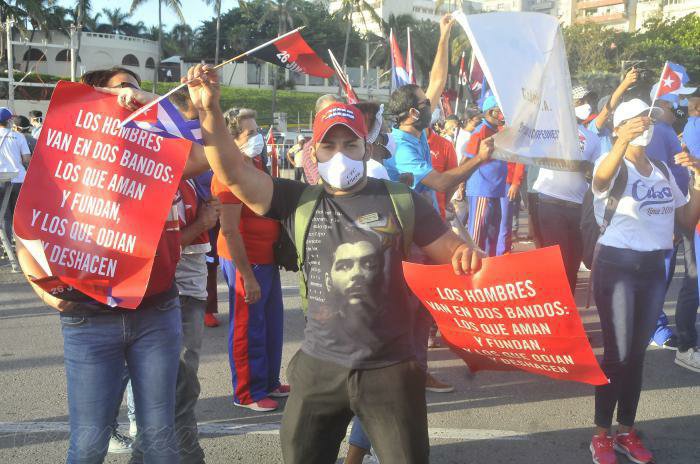 مردم کوبا با تجمعات گستردهی سراسری علیه محاصره ایالات متحده و مداخلات خارجی. راهپیمائی کردند و حملات سایبری و پخش گزارشات جعلی به سود اغتشاشگران صد انقلابی را محکوم کردند.