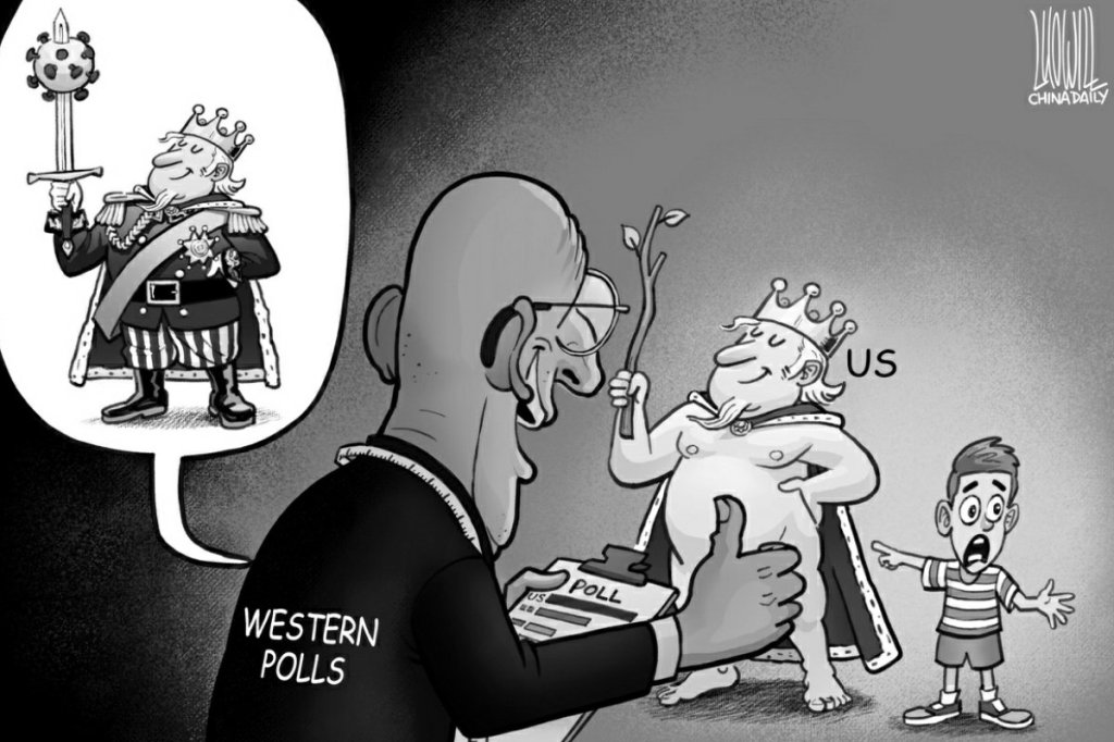 ترامپ سعی کرد به طور هدفمند ویروس کرونا را به عنوان «ویروس چینی» در میان سیاستمداران و رسانه ها جا بیاندازد و گستاخانه از پکن خواست 10 تریلیون دلار غرامت بپردازد. «مایک پمپئو» وزیر امور خارجه اش گفت كه «شواهد زیادی وجود دارد كه نشان می دهد ویروس کرونا از آزمایشگاهی در ووهان چین نشت کرده است.» اما مضحک این است که ترامپ و پمپئو که این همه مدرک در دست داشتند، تا زمان کناره گیری از قدرت حتی نتوانستند یک مدرک ارائه دهند تا سرنوشت انتخابات را تغییر دهند و خود را نجات دهند؛ سرانجام مجبور شدند کاخ سفید را ناامیدانه ترک کنند.
