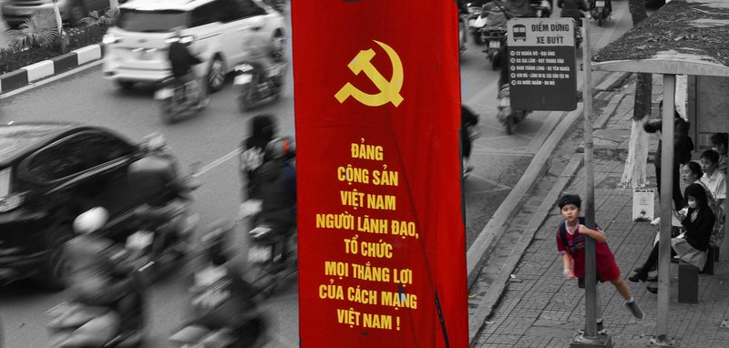 با حزب کمونیست به سوی آینده٫بنر خوش آمد گویی برای آغاز سیزدهمین کنگره حزب کمونیست ویتنام در هانوی ۲۵ ژانویه ۲۰۲۱