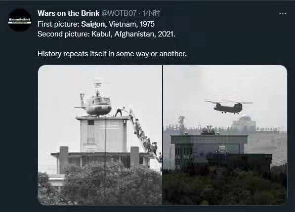 امروز، همین صحنه در افغانستان تکرار شده است. همانطوریکه ارتش آمریکا در جنگ ویتنام شکست خورد و مفتضحانه آن کشور را ترک کرد، «سقوط کابل» نیز نشان دهنده شکست کامل جنگ به رهبری آمریکا در افغانستان است. با فرار سریع آمریکایی ها از کابل، وجهه و اعتبار ایالات متحده بار دیگر به شدت تخریب شده است.