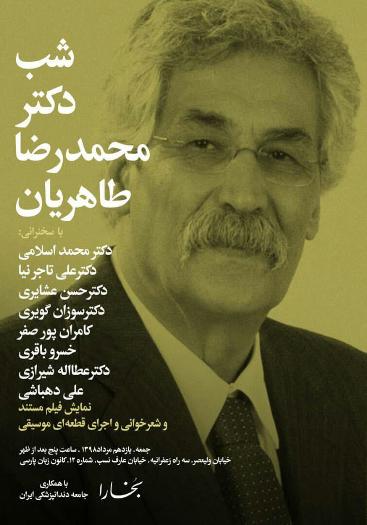 دکتر محمدرضا طاهریان پزشکی انساندوست است. او در سراسر زندگی پرثمرش به سوگند پزشکان در خدمت به دانش و یاری به مردمان از هر نژاد و باور و طبقه اجتماعی وفادار مانده است. مطب او همچون سرای ابوالحسن خرقانی است که بر تارکش نبشته بود: «هر کس که در این سرای درآید، نانش دهید و از ایمانش مپرسید که آن کس که خدای را به جان ارزد، بوالحسن را به نان ارزد.» این است که درماندگان و نداران و دربندیان و رفیقان، بیماران اویند که دکتر مداوا میکند و به عنوان دستمزد «دانش و مردم» به آنها هدیه میکند. دکتر طاهریان سردبیر دانش و مردم است، یادگار فرزانه اندیشمند استاد پرویز شهریاری. وقتی «چیستا» از حرکت باز ایستاد، این دکتر بود که با باوری سترگ بدون لحظهای تردید بانگ برآورد: «ما با «دانش و مردم» راه را ادامه خواهیم داد.» و علیرغم همه دشواریها و بیماری توانفرسا، حتی لحظهای در ایمانش خدشهای نیامد و باور دارم که نخواهد آمد. اما او بیش از همه شاعر است، او شاعر پزشک است و شاعر سردبیر. شاعری که از همان آغاز، شعرش با جان و رنج و عشق و شکست و پیروزی مردمان، بهویژه مردمان زحمتکش فرودست جهان، پیوند خورده است. خود در شعری کوتاه سروده است که : «عرصه غصههای من همه جهان است.»