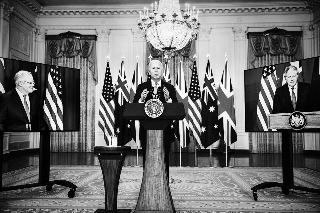 استرالیا به آمریکا و بریتانیا در «مشارکت گستردۀ امنیتی سهجانبه» موسوم به آکوس AUKUS ملحق شده است که هدف ناگفته و در عین حال آشکارِ آن هماهنگی با تشدید تنشها علیه چین است. بنا بر گزارشهای وبگاه آنتیوار Antiwar، رئیسجمهور بایدن و رهبران استرالیا و انگلیس توافقنامه نظامی جدیدی را با هدف مقابله با چین اعلام داشتند. این پیمان که با نام آکوس شناخته می شود بر اشتراک فناوریهای حساس نظامی تمرکز داشته و اولین مرحله آن تأمین زیردریاییهای هستهای برای استرالیاخواهد بود.