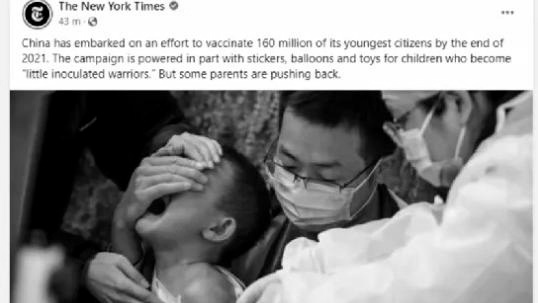 روزنامه آمریکایی «نیویورک تایمز» در گزارشی به واکسیناسیون کودکان چینی علیه ویروس کرونا پرداخته است. با این حال، تصویری که در این گزارش استفاده شد، خشم و انتقاد شدید کاربران خارجی از جمله بسیاری از آمریکاییها را برانگیخت.