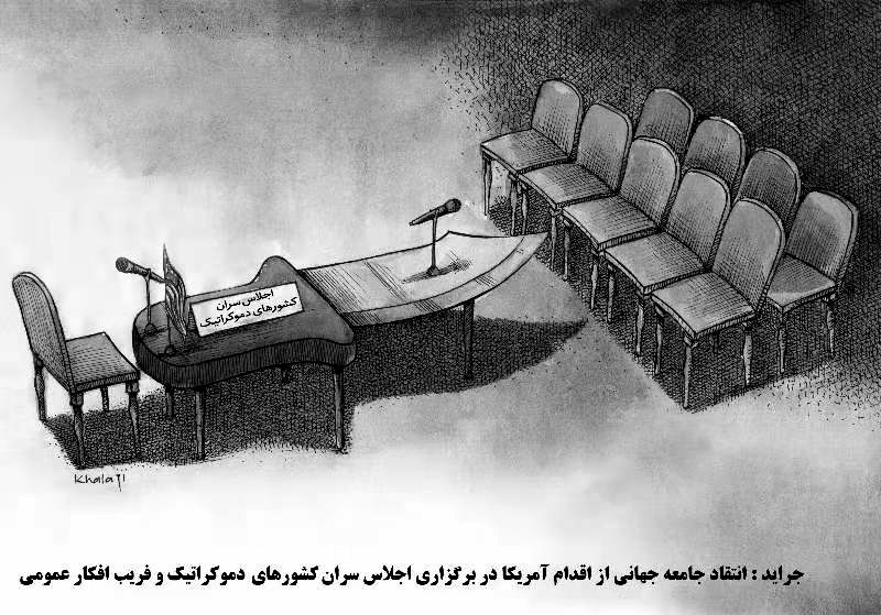 نبود رهبری و نظم موثر در آمریکا باعث مرگ و میر بالای چشمگیر ناشی از کووید-19 شده است. بنا بر این ابتکار بایدن برای برگزاری نشست دموکراسی مثل این است که رئیس یک فاحشهخانه به دختران مدرسهای اصول اخلاقی بیاموزد.