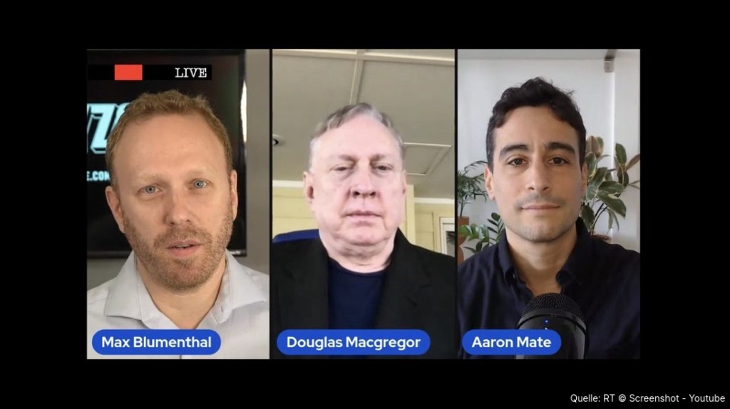 داگلاس مک گرگور، مشاور سابق وزیر دفاع ایالات متحده، به طور مجازی با مکس بلومنتال، روزنامهنگار آمریکایی و آرون ماته، روزنامهنگار کانادایی برای گفتگوی زنده در مورد جنگ اوکراین ملاقات کرد. مک گرگور یک سرهنگ بازنشسته ارتش ایالات متحده و کارشناس نظامی است. در جولای ۲۰۲۰، دونالد ترامپ، رئیس جمهور سابق ایالات متحده، مک گرگور را به عنوان جانشین ریچارد گرنل به عنوان سفیر ایالات متحده در آلمان معرفی کرد. با این حال، سنای آمریکا این انتخاب را تایید نکرد.