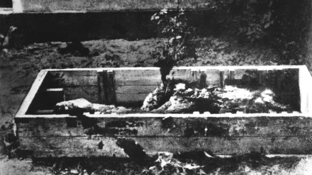 بائر پرسید: اجساد کجا هستند؟ آنها پاسخ دادند: «آنها (هیتلر و همسرش) را در پتو پیچیده اند، آنها را با بنزین آغشته کرده اند و اکنون در طبقه بالا در باغ صدارت می سوزند.»