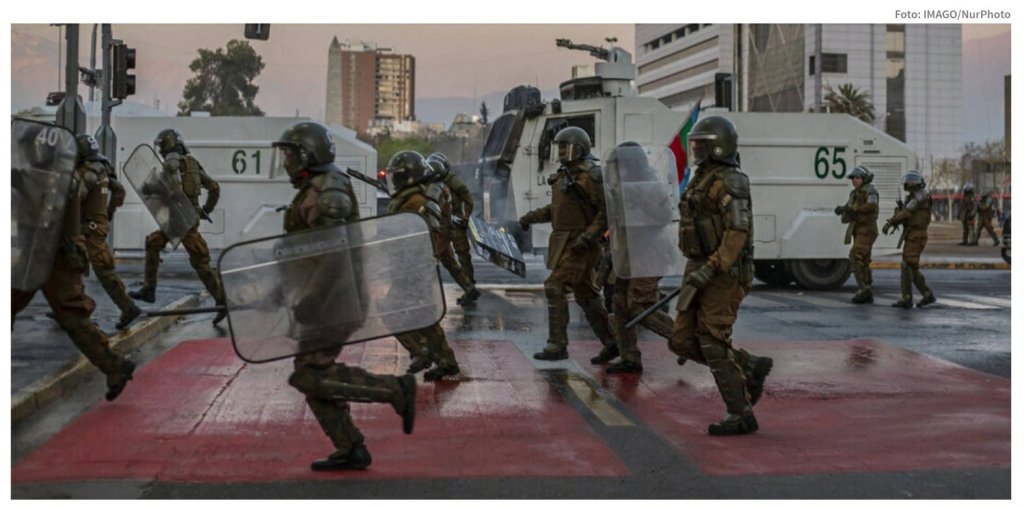 در آنجا پلیس نظامی کارابینروس به تظاهرکنندگان حمله کرد. پورتال آنلاین piensaprensa.cl در توییتر از یک «شکار واقعی» تظاهر کنندگان سخن گفت، ویدئوهای موجود در شبکه های اجتماعی نشان می دهد که نیروهای انتظامی چگونه وحشیانه علیه دانش آموزان عمل می کنند.