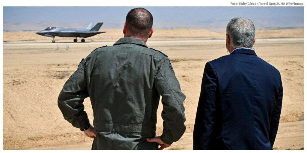 روز سه شنبه، لاپید هنگام بازدید از یک پایگاه نیروی هوایی در کنار یک هواپیمای جنگنده اف-۳۵ فیلمی را منتشر کرد و در آن مدعی شد: