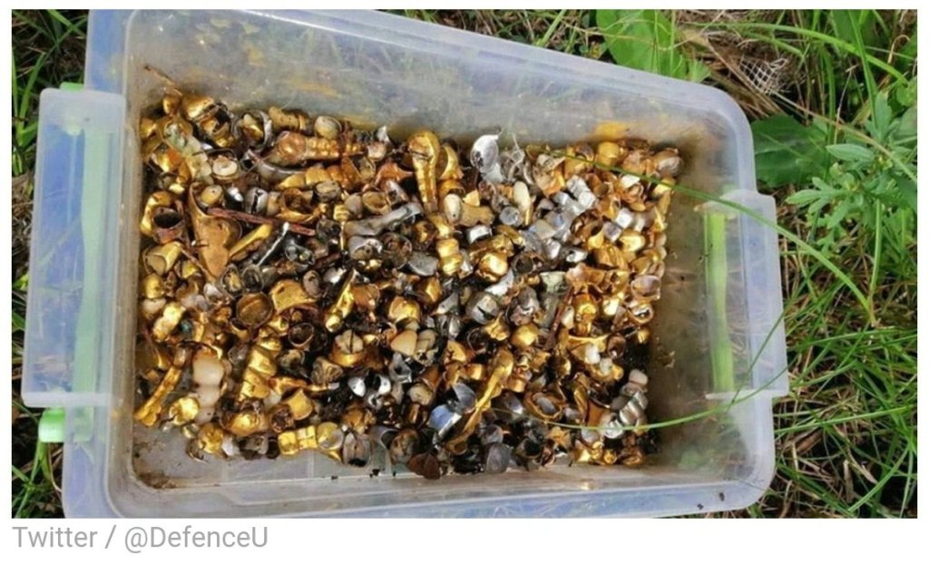 این وزارتخانه در توئیتی با اشاره به اینکه سربازان روسی مرتکب چنین جنایات هولناکی شده اند، پرسید: «چند تا از این ظرف ها پر از دندان طلا دیگر در اوکراین اشغالی پیدا خواهند شد؟»