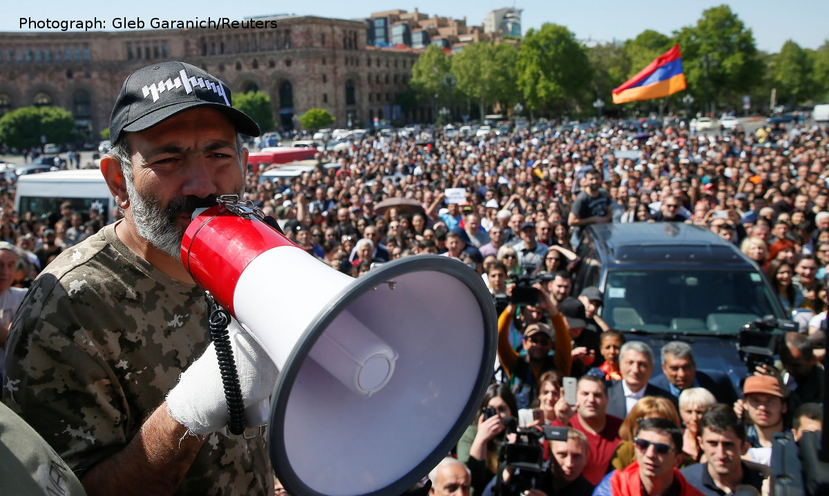 [نیکول پاشینیان، متولد ۱۹۷۵، سردبیر سابق روزنامۀ «هایکاکان ژاماناک» جمهوری ارمنستان، فرزند معنوی جورج سوروس است، که با حمایت پدر معنوی، از پلههای ترقی بسرعت بالا رفت. وی ابتدا در سال ۲۰۱۲ به نماینگی مجلس ارمنستان انتخاب شد. سپس، در سال ۲۰۱۵ حزب «میثاق مدنی» را و در سال ۲۰۱۷ ائتلاف «راهکار» را تشکیل داد. او در بهار سال ۲۰۱۸، طی یک «انقلاب رنگی» تحت رهبری جورج سوروس به مقام نخست وزیری ارمنستان رسید].