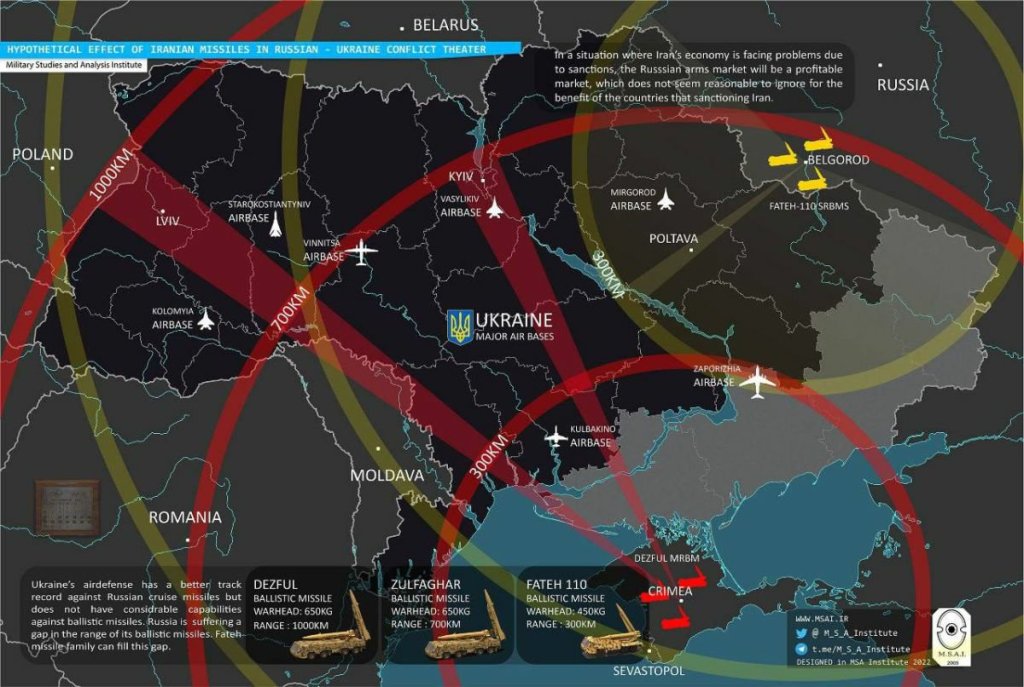 «موشک فاتح-۱۱۰ که از آزمایشهای رزمی گذشته و به تولید انبوه رسیده است، گمان میرود مورد توجه ژنرالهای روسی قرار گیرد. برد این موشک تقریباً ۳۰۰ کیلومتر است که برای انهدام بسیاری از اهداف در اوکراین مناسب است».