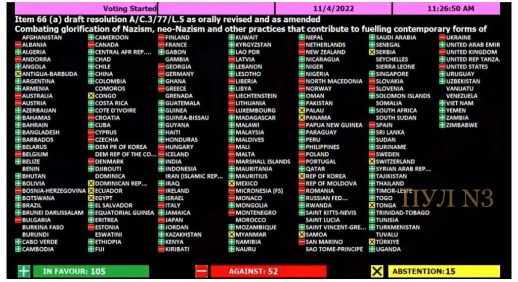 به گزارش روسیه امروز، تا پیش از این رای گیری اخیر، فقط این ایالات متحده و اوکراین بودند که آشکارا با قطعنامه سازمان ملل علیه ستایش نازیسم مخالفت کردند.