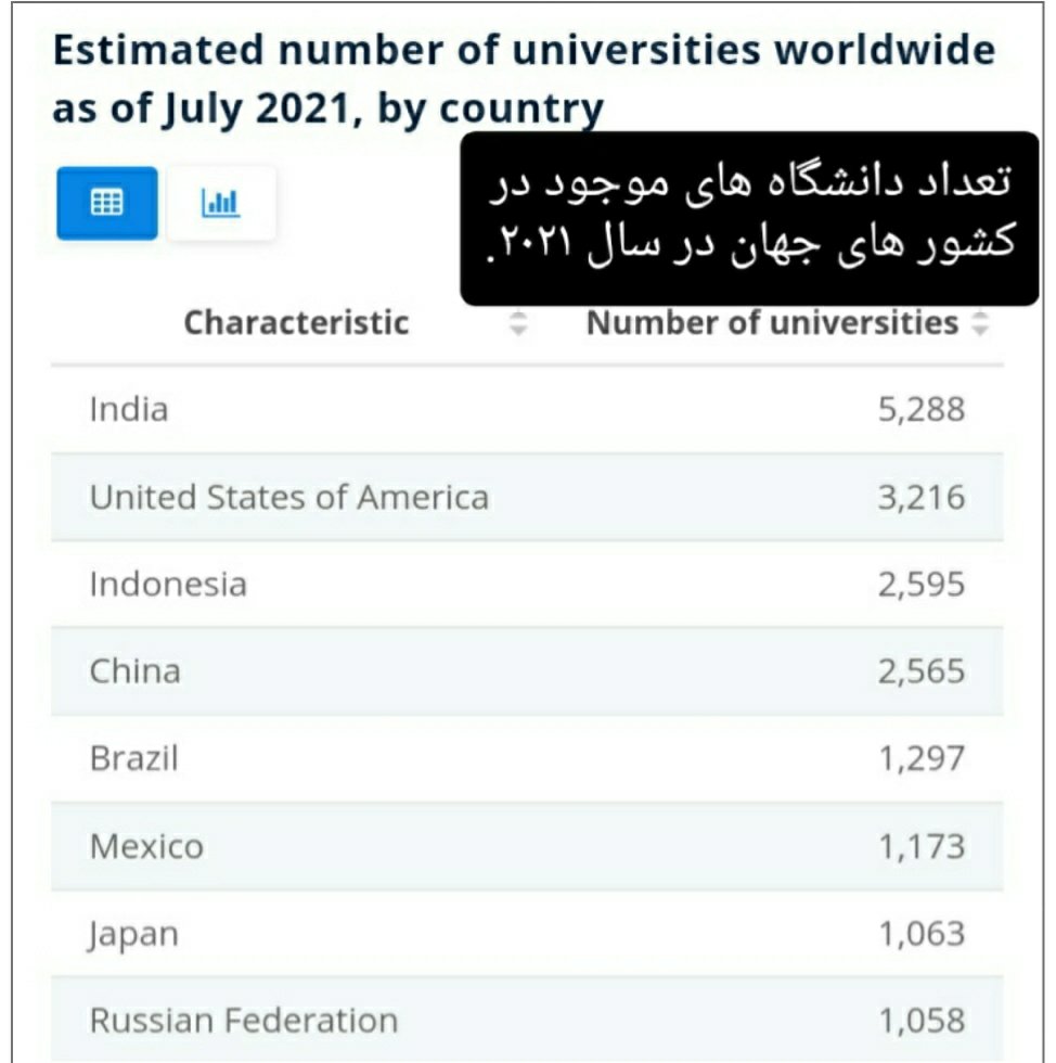 *تعداد دانشگاههای کشورهای جهان در سال ۲۰۲۱: