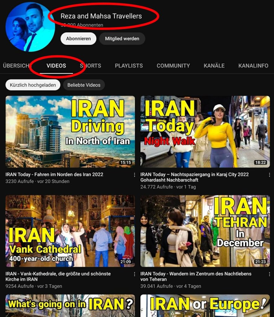 هر چه به سمت پایین تر صفحه بروید ویدیو های قدیمی تر را میتوانید مشاهده کنید. بسیاری از این ویدیوها زندگی و مراکز خرید ثروتمندان در مناطق پولدارنشین را نشان میدهد با کمی جستجو اما ویدیوهایی از مناطق معمولی و حتی فقیر نشین قابل مشاهده است و از جمله پوشش مردم را میتوان در این ویدیو ها مشاهده کرد.