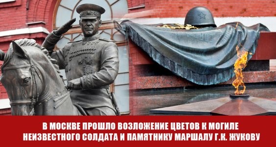 روز ۸ مه، در مسکو، در آستانۀ هفتاد و هشتمین سالگرد پیروزی بزرگ، تاجهای گل بر آرامگاه سرباز گمنام و یادوارۀ گئورگی ژوکوف، مارشال اتحاد جماهیر شوروی اهداء شد. در مراسم نثار تاجهای گل، گنادی زیوگانوف، صدر کمیتۀ مرکزی حزب کمونیست فدراسیون روسیه و رهبر نیروهای میهنپرست خلق روسیه شرکت داشت.