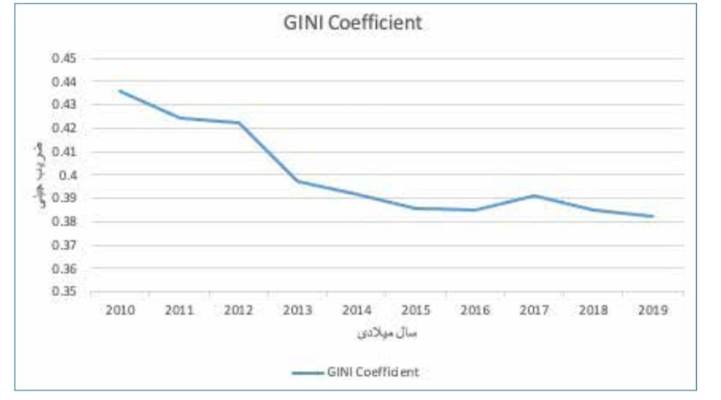 ۱. ضریب جینی معیاری از پراکندگی آماری در اقتصاد است که برای نشان دادن نابرابری درآمد یا ثروت در یک کشور یا هر گروه دیگر از مردم در نظر گرفته شدهاست. ضریب جینی عددی میان ۰ و ۱ است و هرچه این عدد به صفر نزدیکتر باشد میزان نابرابری کمتر و هرچه به یک نزدیکتر باشد میزان نابرابری بیشتر است.