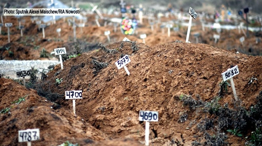«سازمان های اجرای قانون محلی به طور فعال به دنبال بررسی مکان های دفن موقت همراه با کارشناسان مرکز پزشکی قانونی و دفتر پزشک ارشد هستند. تنها در هفته گذشته، در مجموع ۱۰۱ قبر از این دست در لوهانسک شناسایی و ۱۷۱ جسد مورد بررسی قرار گرفت.