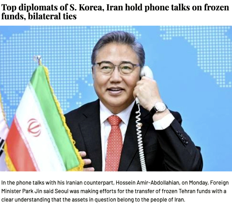 وزیر امور خارجه کره جنوبی در تماس تلفنی اخیر خود با وزیر امور خارجه ایران گفت: کره جنوبی رایزنی های نزدیک خود را با کشورهای ذیربط ادامه می دهد و تمام تلاش خود را برای حل موضوع رفع انسداد وجوه ایران در کره جنوبی به کار می گیرد.