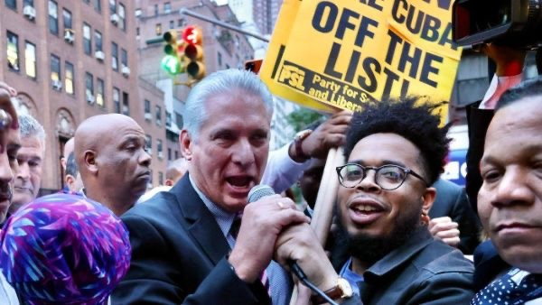 رئیس جمهور کوبا، میگل دیاز-کانل، که برای شرکت در هفتاد و هشتمین مجمع عمومی سازمان ملل متحد در نیویورک حضور دارد، به معترضان سلام مردم کوبا را رساند و از حمایت آنها از جبهه کوبا ابراز قدردانی کرد.