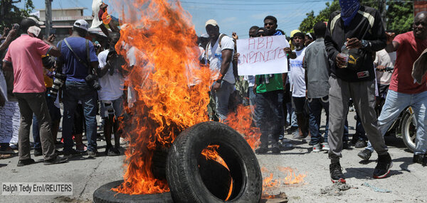 هزاران نفر روز دوشنبه در پایتخت پورتوپرنس خواستار محافظت و کمک در برابر خشونت روزافزون گروه های جنایتکار شدند و خودروهای دولتی را به آتش کشیدند. یکی از شرکت کنندگان به خبرگزاری رویترز گفت: «ما نمی توانیم بخوابیم. ما نمی توانیم غذا بخوریم. ما حتی نمیتونیم زندگی کنیم. ما گروه های جنایتکار را ایجاد نکردیم.» این نشان می دهد که علاوه بر پلیس خود، رهبری سیاسی سال های اخیر نیز مسئول این وضعیت است.