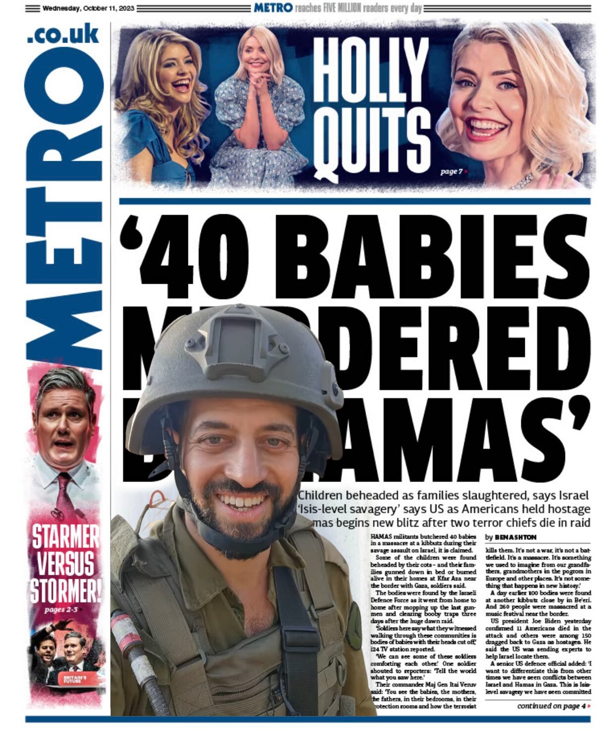 ساعات بعد، او با بیان اینکه «سربازان به من گفتند که بر این باورند ۴۰ نوزاد و کودک کشته شده اند. تعداد دقیق کشته شدگان هنوز مشخص نیست زیرا ارتش همچنان به خانه به خانه می رود و تلفات بیشتری از اسرائیلی ها را پیدا می کند.»
