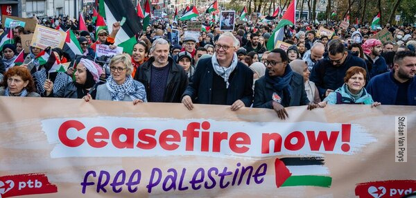 در تظاهرات همبستگی با مردم فلسطین در بلژیک، پرچمها و بنرهای حزب کارگر (PvdA/PTB) به وضوح قابل مشاهده است. موضع حزب شما در مورد جنگ در غزه چیست؟