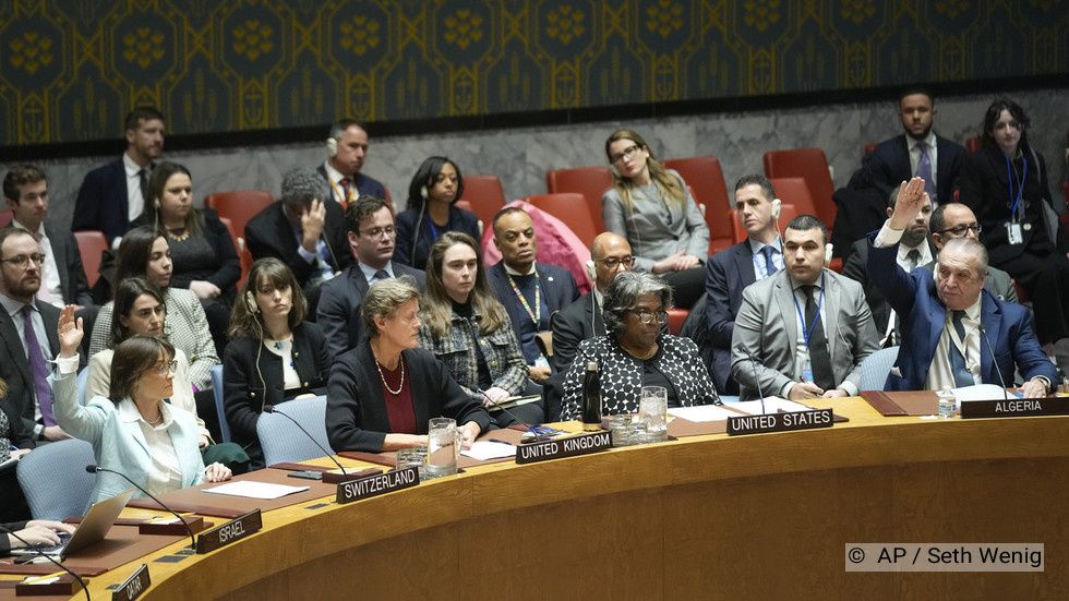 ایالات متحده با وتوی قطعنامه شورای امنیت سازمان ملل متحد که خواستار آتش بس در غزه بود، تنها رای مخالف را در پیش نویسی که حمایت اکثر اعضای دیگر را به خود جلب کرد، ثبت کرد.