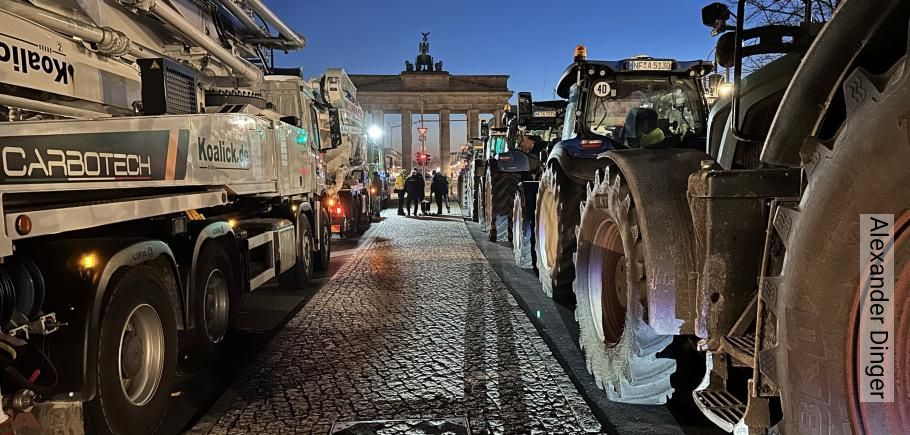 کشاورزان به محض اطلاع از برنامه دولت جهت کاهش حمایتهای مالیاتی به سرعت وارد صحنه شدند و با تراکتورهای خود در آلمان به حرکت درآمدند. کشاورزان به نشانه اعتراض با هزاران تراکتور وارد شهرهای بزرگ و یا بزرگراهها میشوند.