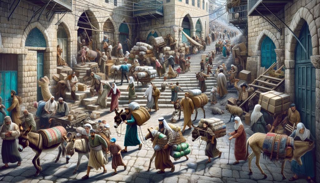 شکل دیگری از خشونت، استراتژی «کار یهودی» بود که هدف آن بیرون راندن فلسطینیان از بازار کار بود. این استراتژی و پاکسازی قومی، موجب فقر شدید در مناطق روستایی فلسطین شد و مردم را به مهاجرت اجباری به شهرهایی کشاند که قادر به تأمین کار و مسکن مناسب نبودند.