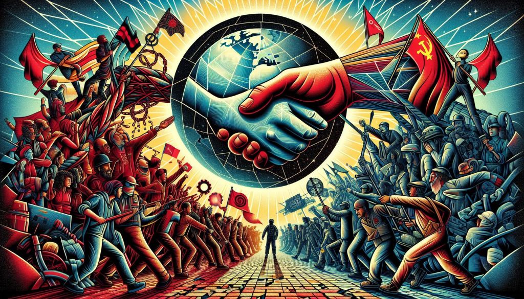 اما نباید تنها نظارهگر فرآیندهای مذکور باشیم، بلکه باید به سختی تلاش کنیم تا در میان جوامع کارگری کشورهای خود، پایهای را ایجاد کنیم که بستر تغییرات اجتماعی شود، هنگامی که تحولات ژئوپلیتیک تغییراتی اساسی را ایجاب کنند. مردم کارگر در تمام کشورها باید بدانند که سرنوشتشان در دستان خودشان است و وظیفه دارند دنیای جدیدی بدون بهرهکشی، فقر و بدبختی بسازند، با قدرت سازماندهی خود، با توان بنیادهای محلی و با همبستگی با مبارزات ملتهای تحت ستم جهان.