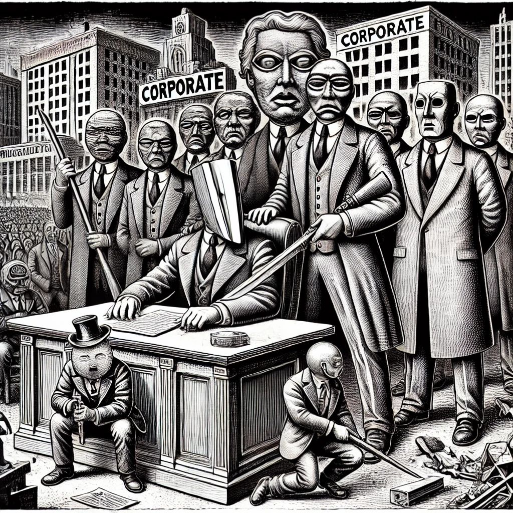 یک ثروتمند که توسط هیچ انتخاباتی برگزیده نشدهزیرساختهای دولتی را تصاحب میکند، کنترل ارتباطات را در دست میگیرد و خزانه را برای سود شخصی غارت میکند. یک سیاستمدار قدرتمند حمایت شده توسط میلیاردرها از یک شبه نظامی وفادار برای سرنگونی دموکراسی استفاده میکند. اینها نشانههای دولتهای سرکش نیستند — بلکه نتیجه منطقی اقتدارگرایی شرکتی هستند.