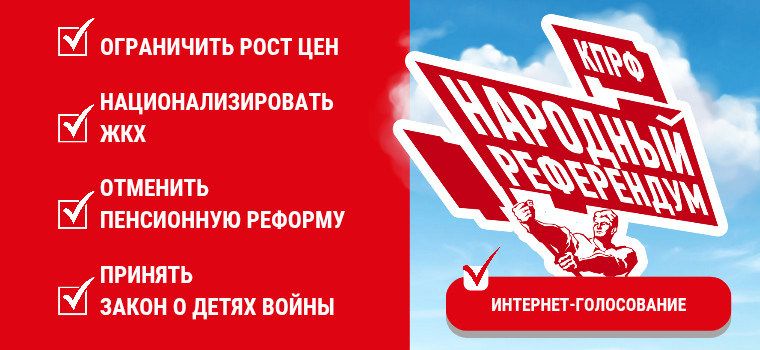 حزب کمونیست فدراسیون روسیه معتقد است شهروندان کشورحق دارند نظرات خود را در مورد مهمترین موضوعاتی که مستقیماً برزندگی وآینده آنان و میهن تأثیرمی گذارد ارائه دهند. حزب کمونیست فدراسیون روسیه متعهد شده است با سازماندهی یک رفراندوم مردمی بطورمستقیم چنین فرصتی را برای مردم فراهم کند و ازهمه کسانیکه به اراده وآرمان مردمی نزدیک هستند خواسته شده است دراین همه پرسی شرکت نمایند.