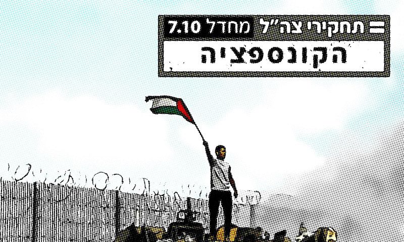 شبکه خبری اسرائیلی N12 از این تصویر برای همراهی مقاله درباره بررسی نظامی استفاده کرد. متن عبری روی آن میگوید: «بررسی ارتش اسرائیل: شکست در ۷ اکتبر – مفهوم». واژه «مفهوم» برای توصیف تکبری استفاده شد که باعث شد اسرائیل در ۱۹۷۳ توسط حمله سوریه و مصر غافلگیر شود. تصویر نشاندهنده مبارزان فلسطینی است که یک تانک اسرائیلی را نزدیک حصار غزه به کنترل درآوردهاند. منبع: ۲۰۲۵، اخبار N12.