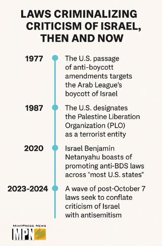 در سراسر ایالات متحده و بخش اعظم غرب، انتقاد از اسرائیل و همبستگی با فلسطین به طور فزایندهای در حال جرمانگاری است—پروژهای که مدتهاست توسط دولت اسرائیل و شبکههای لابی قدرتمند آن حمایت میشود.
