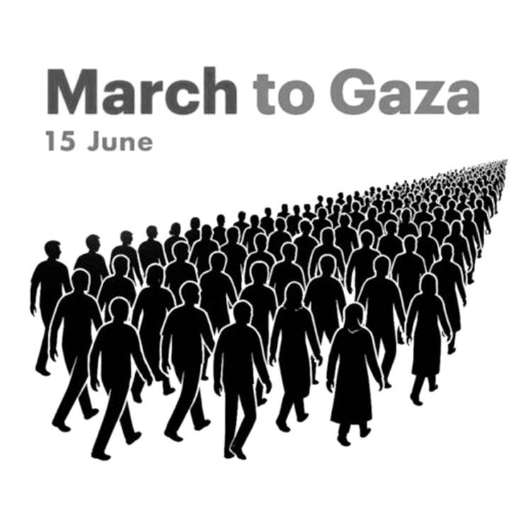 شرکتکنندگان در ۱۲ ژوئن در مصر گرد هم میآیند و به عنوان بخشی از یک کارزار یک هفتهای که خواستار دسترسی فوری بشردوستانه به غزه است، جایی که کمکها از ۲ مارس متوقف شده، به سمت گذرگاه مرزی رفح در شمال سینا راهپیمایی میکنند.