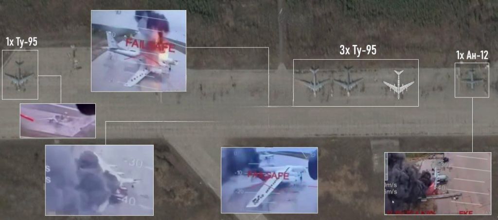 بر اساس گزارشهای رویترز و وبسایت «وارزون»، تصاویر ماهوارهای راداری (SAR) نشان میدهند که در پایگاه هوایی «بریا» در نزدیکی ایرکوتسک، دستکم ۴ فروند بمبافکن Tu-95 و ۴ فروند Tu-22M3 مورد اصابت قرار گرفته و آسیب دیدهاند. همچنین، در پایگاه هوایی «اولنیا» در نزدیکی مورمانسک، ۴ فروند Tu-95 و یک فروند هواپیمای ترابری دچار آسیب شدهاند. در مجموع، روسیه ۱۳ فروند هواپیمای بزرگ، از جمله ۸ بمبافکن Tu-95 را از دست داده است.