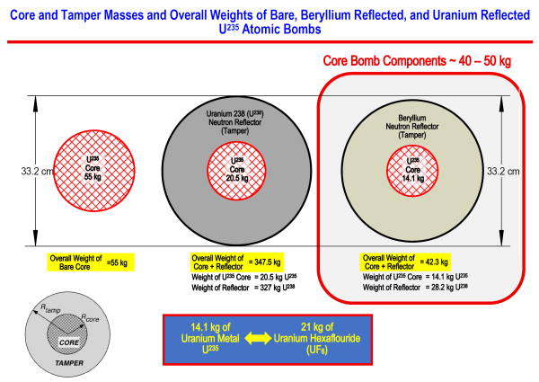 یک بمب اتمی کوچک از این نوع تنها حدود 150 کیلوگرم وزن خواهد داشت. (در مقایسه، کلاهکهای برخی از موشکهای ایرانی که در طول جنگ دوازده روزه به سمت اسرائیل پرتاب شدند، بین 460 تا 500 کیلوگرم وزن داشتند.)