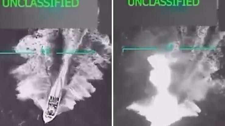 ترامپ سپس در شبکههای اجتماعی ادعا کرد که در این عملیات نظامی یازده نفر کشته شدهاند و ویدئویی از یک قایق کوچک در حال انفجار و آتش گرفتن منتشر کرد.