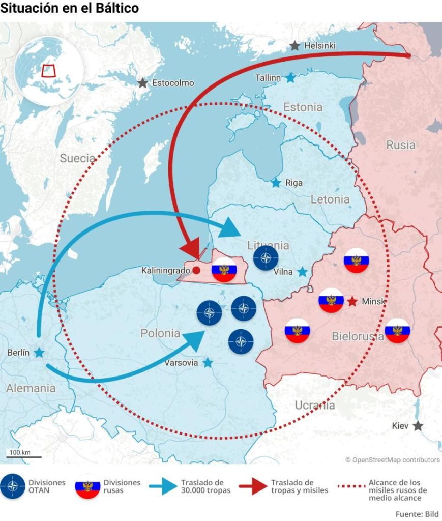 در ۱۷ ژوئیه، سپهبد کریستوفر دوناهیو، فرمانده نیروهای ایالات متحده در اروپا، در ویسبادن اعلام کرد که ناتو «طرحی دقیق برای حمله و تصرف منطقه روسی کالینینگراد در زمانی بیسابقه – سریعتر از هر آنچه پیشتر قادر بودهایم» آماده کرده است. کالینینگراد نقطهای از نظر نظامی آسیبپذیر برای روسیه است که میان لهستان و لیتوانی قرار دارد و از نظر جغرافیایی از دیگر بخشهای فدراسیون روسیه جدا افتاده است. به همین دلیل مسکو در آنجا شمار زیادی سرباز، ۷۵ ناو جنگی، هواپیماهای جنگی مافوق صوت و موشکهای هستهای تاکتیکی «اسکندر-ام» مستقر کرده است.