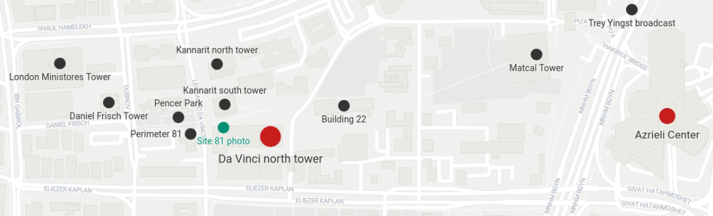 اکنون یک عکس گرفتهشده در خارج از «سایت ۸۱» از نظر جغرافیایی در محوطهٔ مجتمع آپارتمانی دا وینچی موقعیتیابی شده است؛ مجتمعی که یکی از ساکنان آن، آن را بهعنوان سپری برای مقر فرماندهی ارتش اسرائیل محکوم کردند. ایمیلهای فاششده از یک رئیس ستاد سابق ارتش اسرائیل همچنین نشان میدهد که «سایت ۸۱» یک گرهٔ فرماندهی و کنترل مهم است. نشریهٔ جروزالم پست (The Jerusalem Post) نیز گزارش داد که موشکی که برجهای دا وینچی را هدف قرار داده، «فقط در یک قدمی دفتر نتانیاهو» (Netanyahu) اصابت کرده است؛ دفتری که آن زمان با عنوان «ساختمان ۲۲» شناخته میشد. بازسازی دفتر نخستوزیر تنها چند هفته پس از «جنگ دوازده روزهٔ ۲۰۲۵» بین اسرائیل و ایران آغاز شد و شایعه شده است که در این حمله آسیب دیده بود.