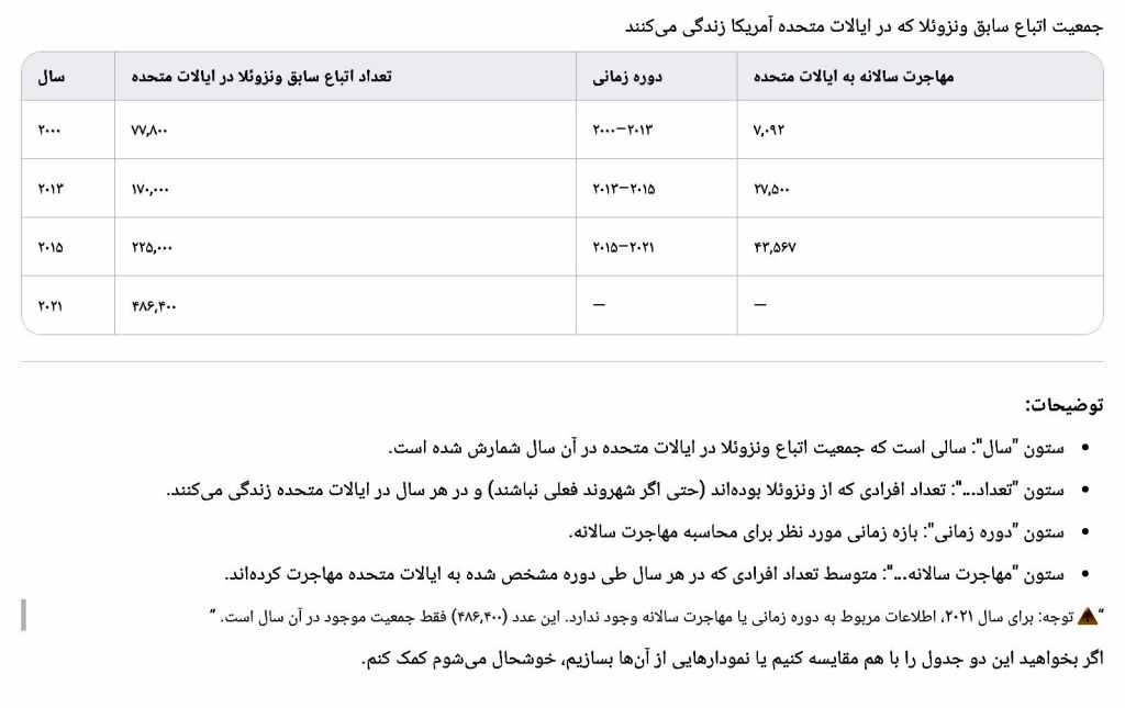 امروزه، دادههای بخش جمعیت سازمان ملل ادعا میکنند که ۷.۶ میلیون نفر از سال ۲۰۱۵ ونزوئلا را ترک کردهاند. اگر این رقم دقیق بود، میبایست انتظار داشت که تعداد بسیار بالاتری از مهاجران ونزوئلایی در ایالات متحده مشاهده شود. تا سال ۲۰۲۱، بخش جمعیت سازمان ملل ادعا کرده بود که بیش از ۵ میلیون نفر از سال ۲۰۱۵ ونزوئلا را ترک کردهاند. اما تا سال ۲۰۲۱ (به جدول زیر مراجعه شود)، تعداد مهاجران ونزوئلایی در ایالات متحده کمتر از سایر کشورهای آمریکای لاتین باقی ماند، کشورهایی که جمعیت بسیار کمتری نسبت به ونزوئلا دارند: السالوادور، گواتمالا، جمهوری دومینیکن و هندوراس.