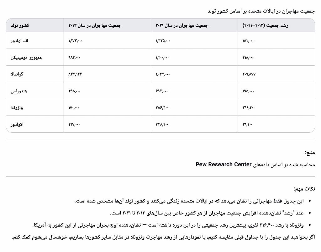 ^{4} سال ۲۰۲۱ جدیدترین سالی است که توانستیم دادههایی برای گروههای لاتینتبار در ایالات متحده را که به «متولد ایالات متحده» و «متولد خارج» (مهاجران) تفکیک شدهاند، بیابیم.
