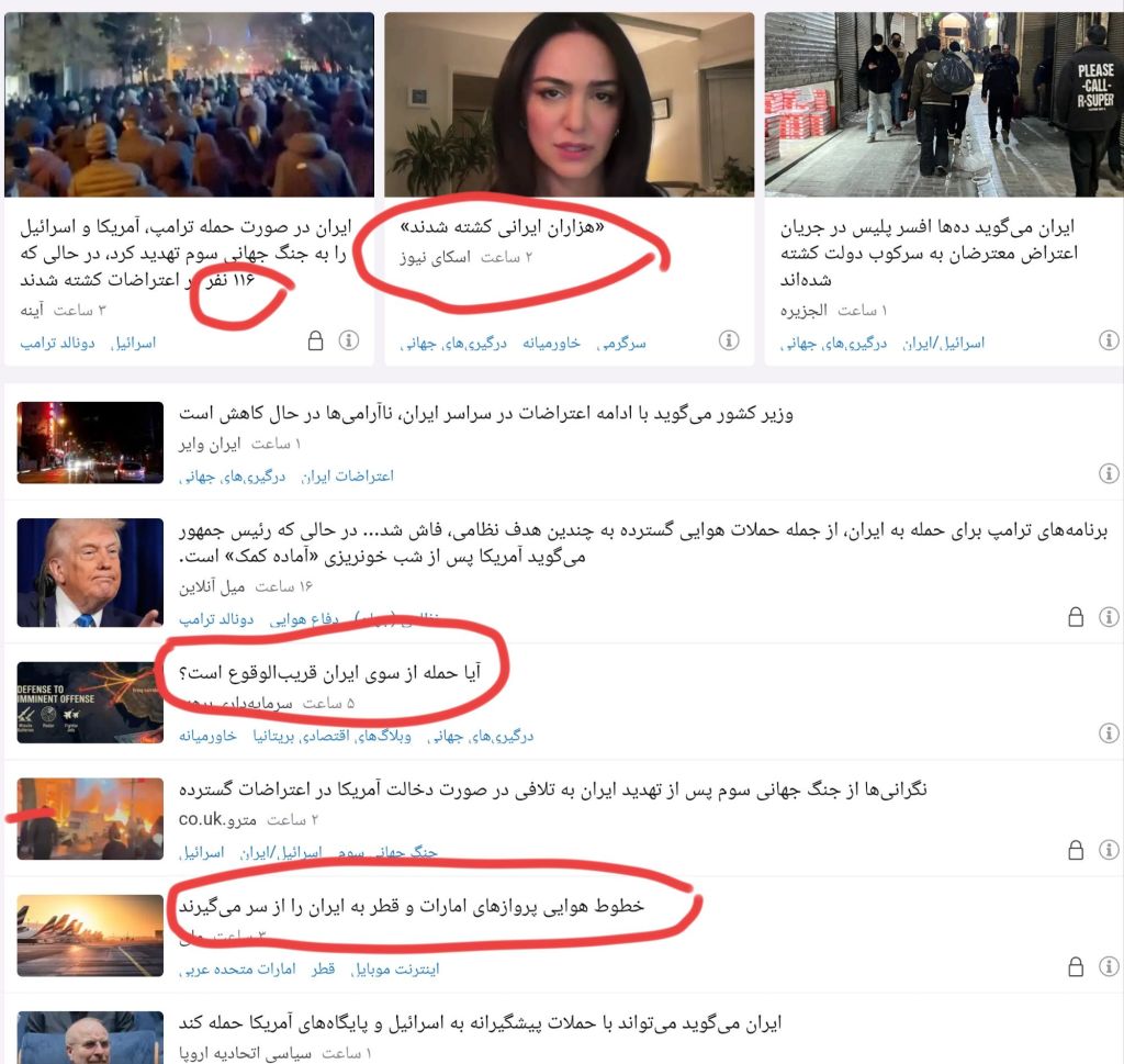 قطع ارتباطات اینترنتی در ایران، که اقدامی امنیتی از سوی حکومت بوده، خود به میدانی مناسب برای جنگ اطلاعاتی تبدیل شده است. در این فضای تاریک اطلاعاتی، شبکههای خبری و گروههای مخالف، سیلی از تصاویر، ویدئوها و روایتهای جعلی، دستکاریشده یا کاملاً ساختگی را منتشر میکنند.